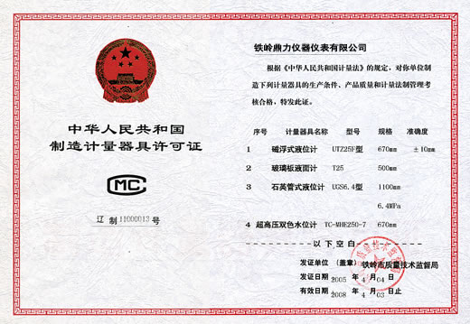 中華人民共和國(guó)制造計(jì)量器具許可證