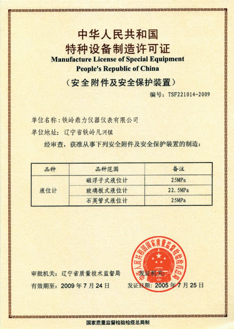 中華人民共和國(guó)特種設(shè)備制造許可證